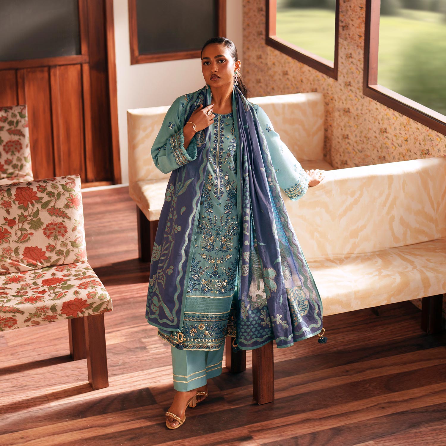 2 Piece - Printed Embroidered Suit - KFE26-229