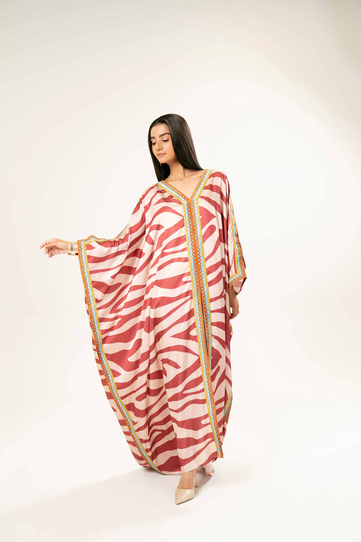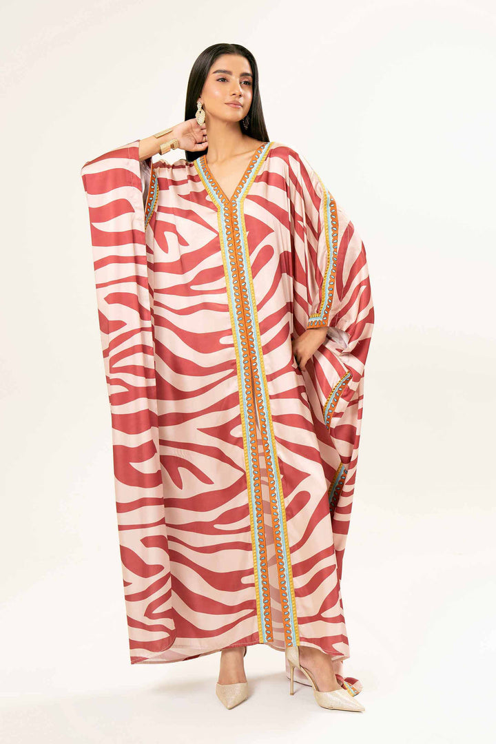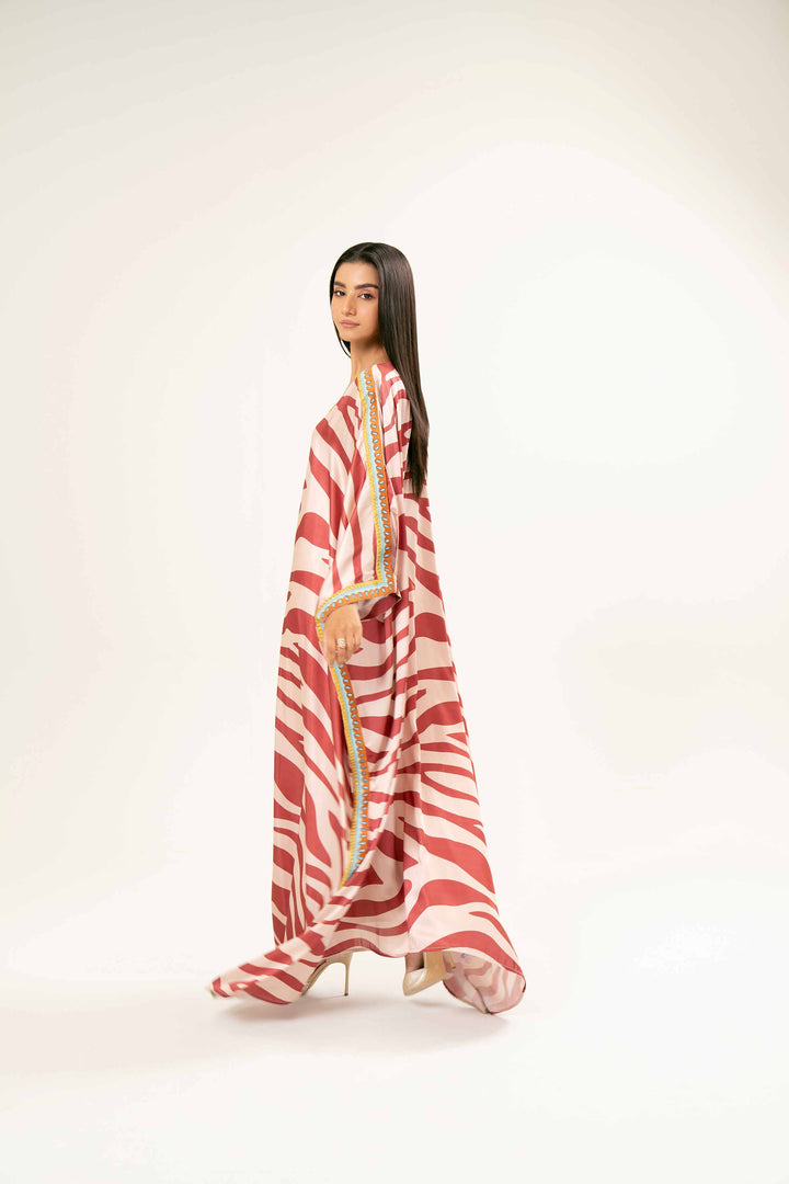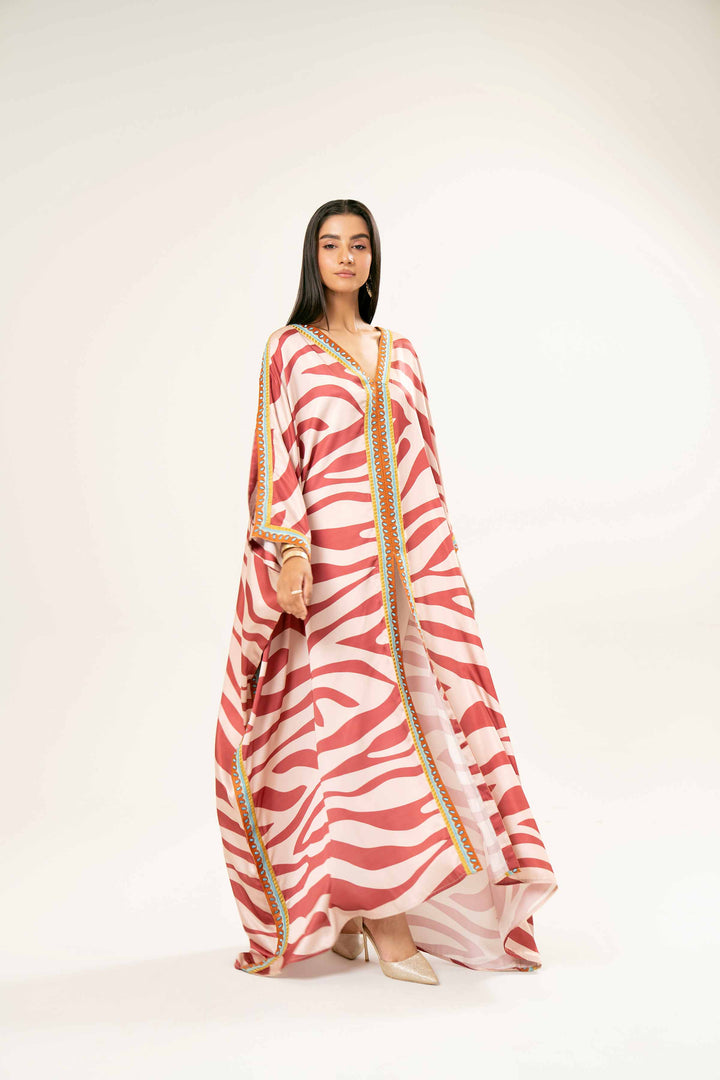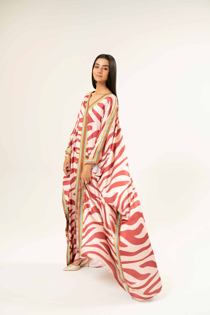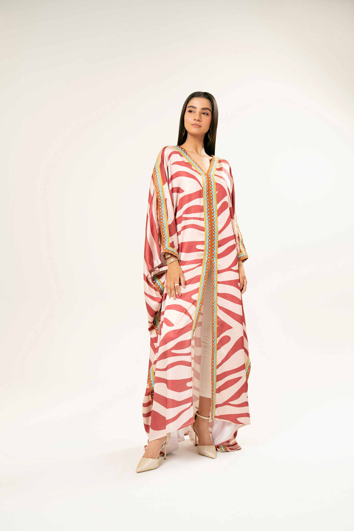 Create a picture-perfect look with this printed embroidered kaftan from the latest pret winter collection.