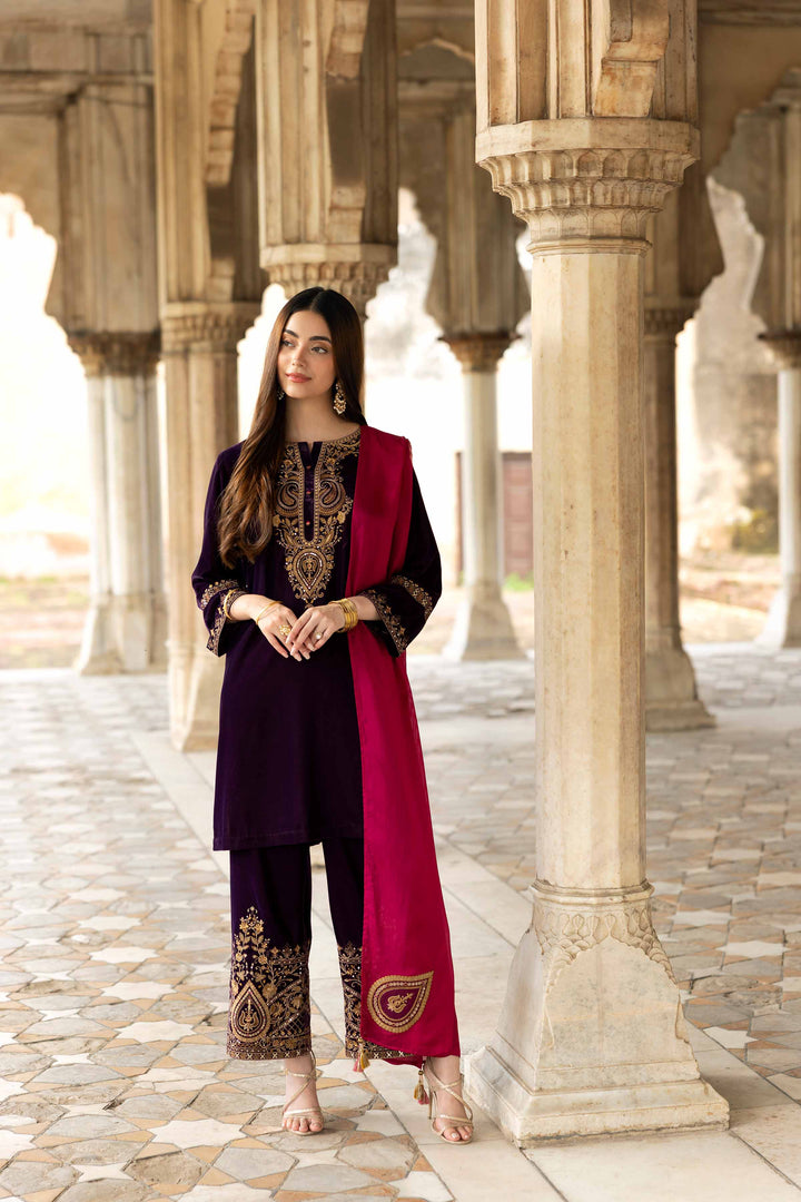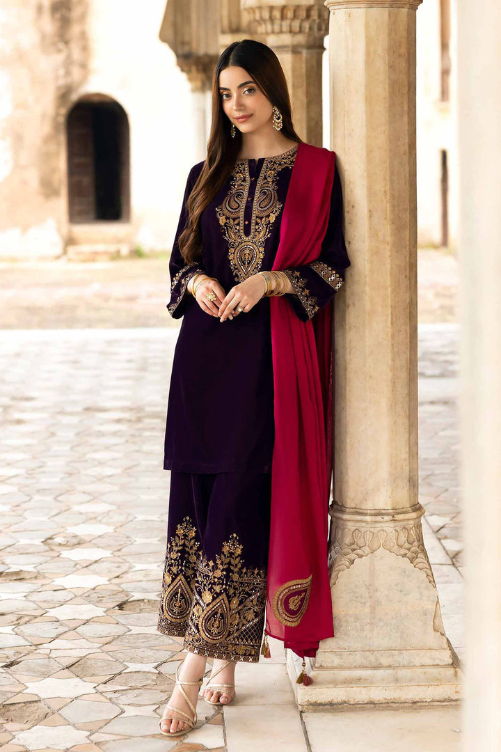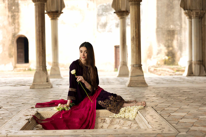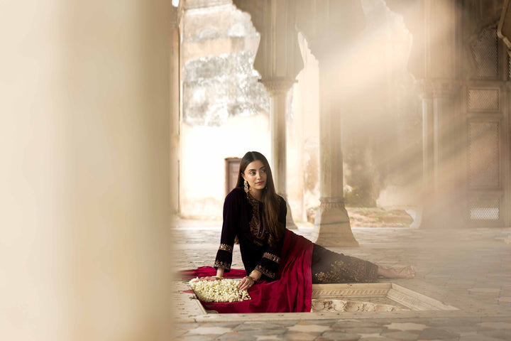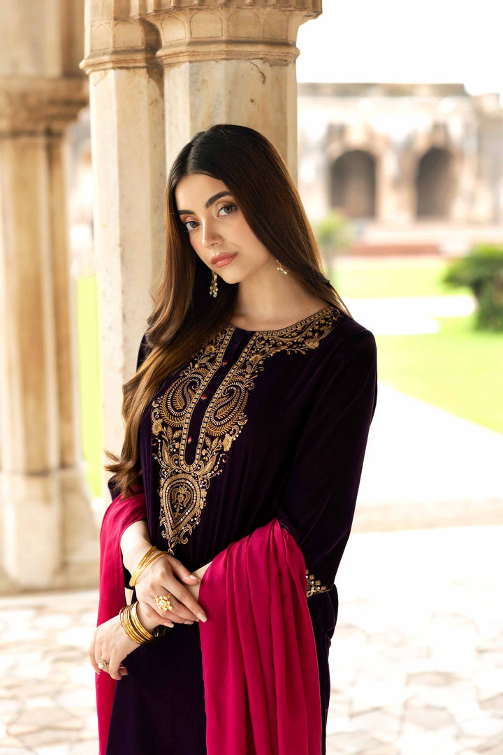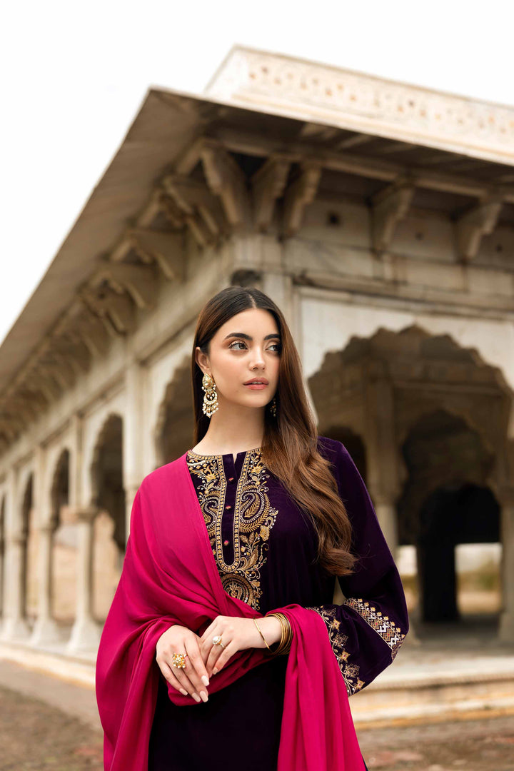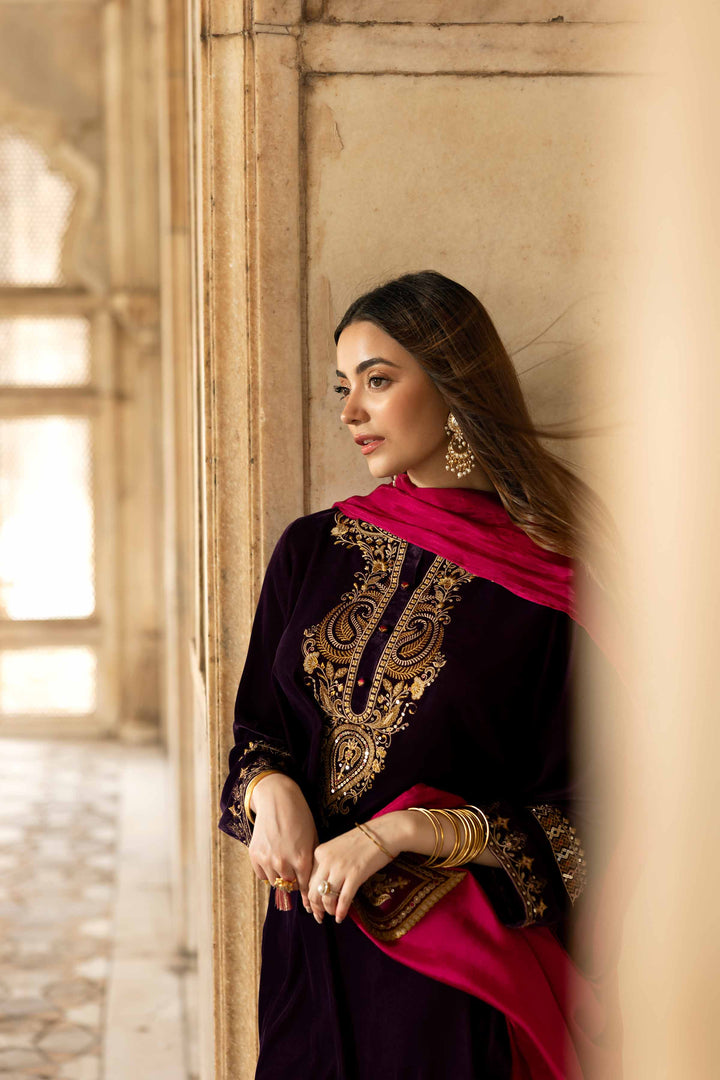 Stand out this Winter in this embroidered three-piece suit from the latest Luxury Pret Winter Collection, designed with intricate craftsmanship and grace.