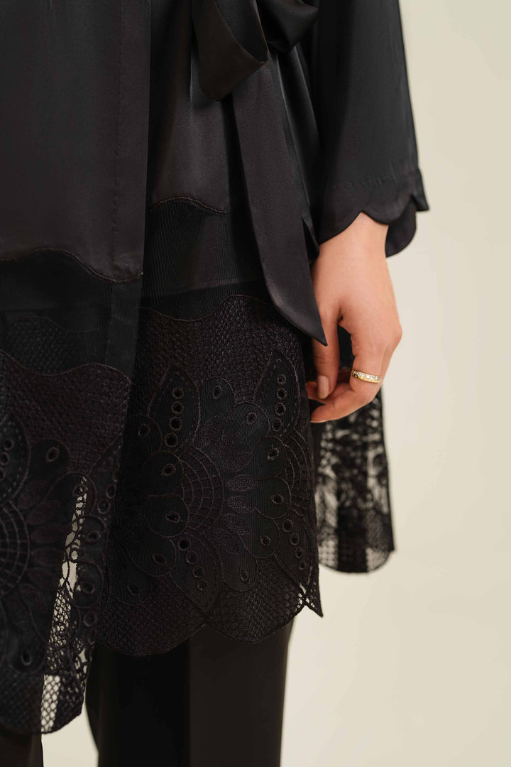 Scalloped Sleeves Edges, Embroidered Hem, Front Open Loungewear Gown