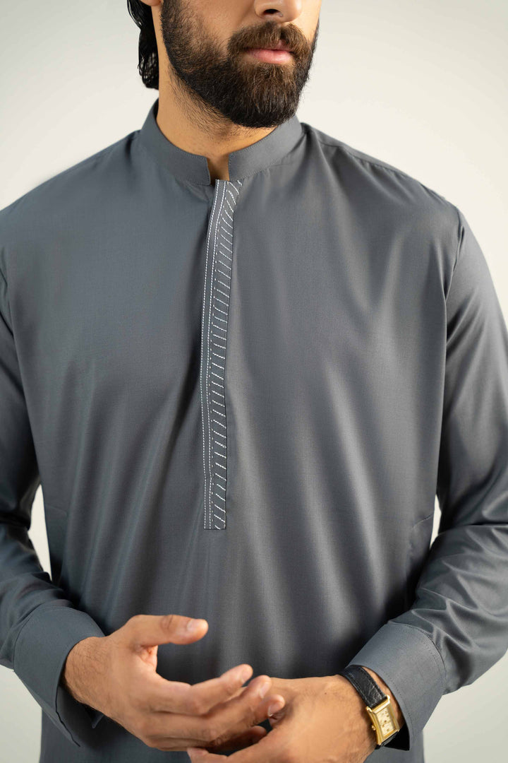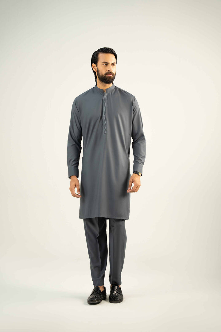 Define your style by wearing this embroidered two-piece suit from the latest pret men collection.