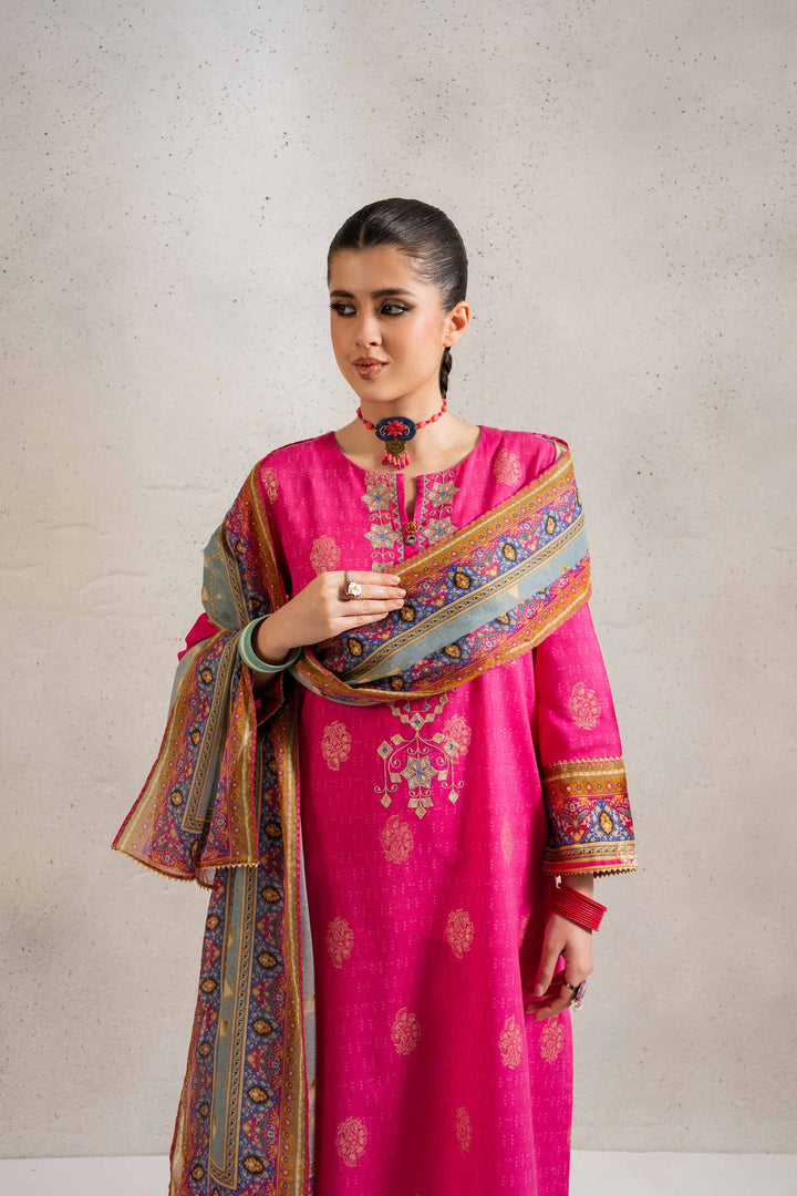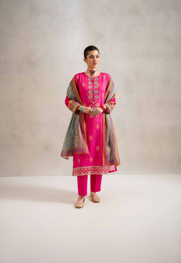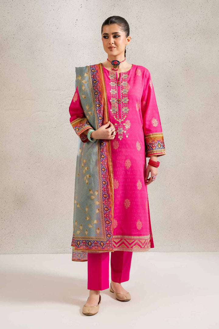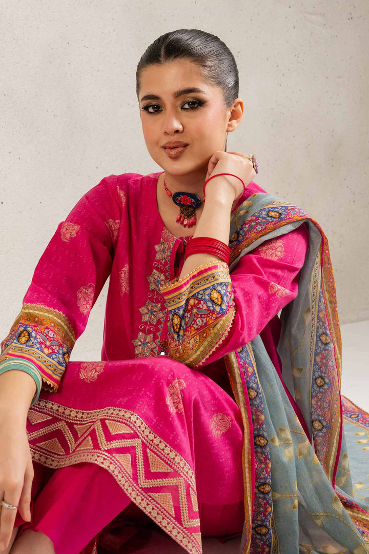 Enhance the value of the entire clothing with this printed embroidered three-piece suit from the latest pret summer COLOR CONTRAST collection.