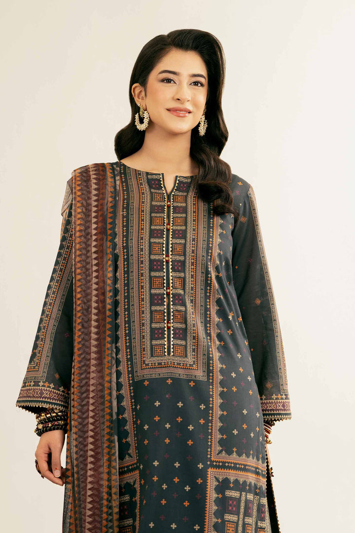 Create a gorgeous and magnificent look with this printed three-piece suit from the latest pret summer collection.