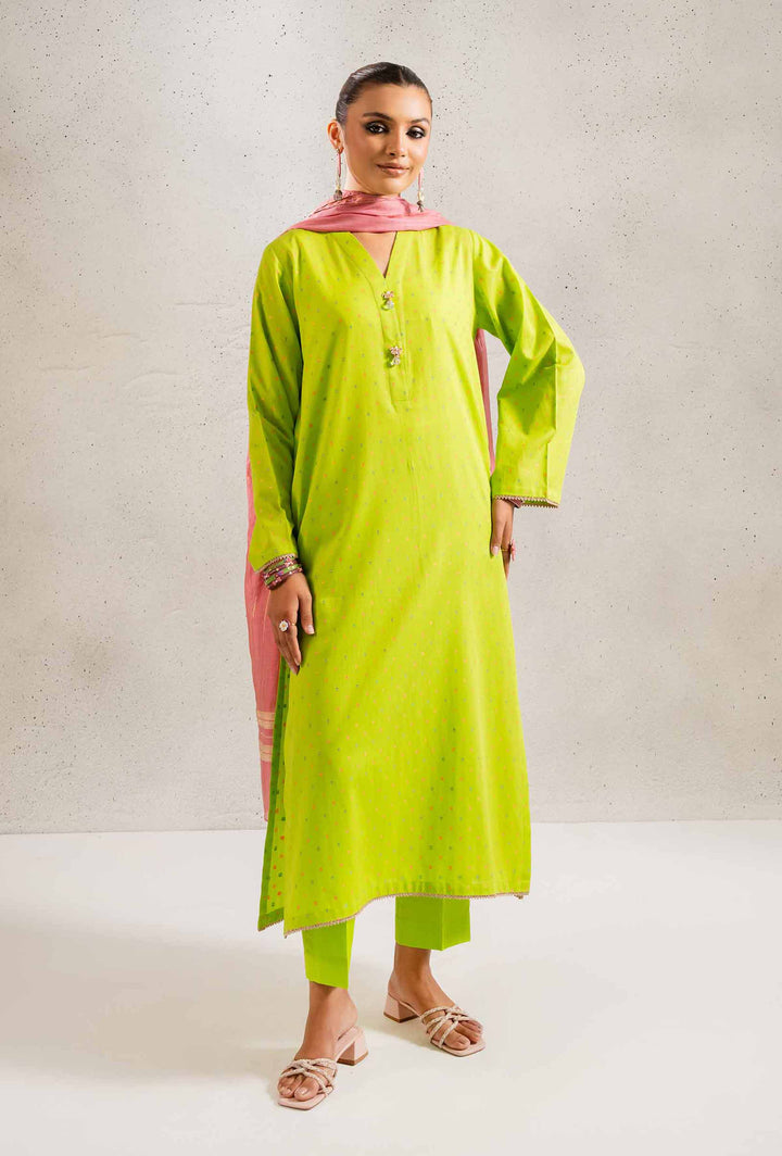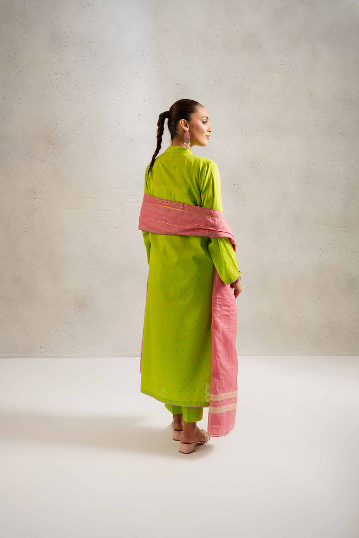 Enhance the value of the entire clothing with this basic three-piece suit from the latest pret COLOR CONTRAST summer collection.