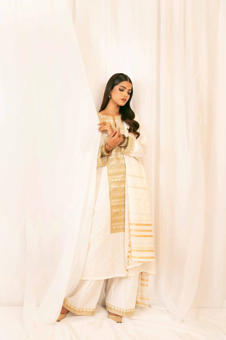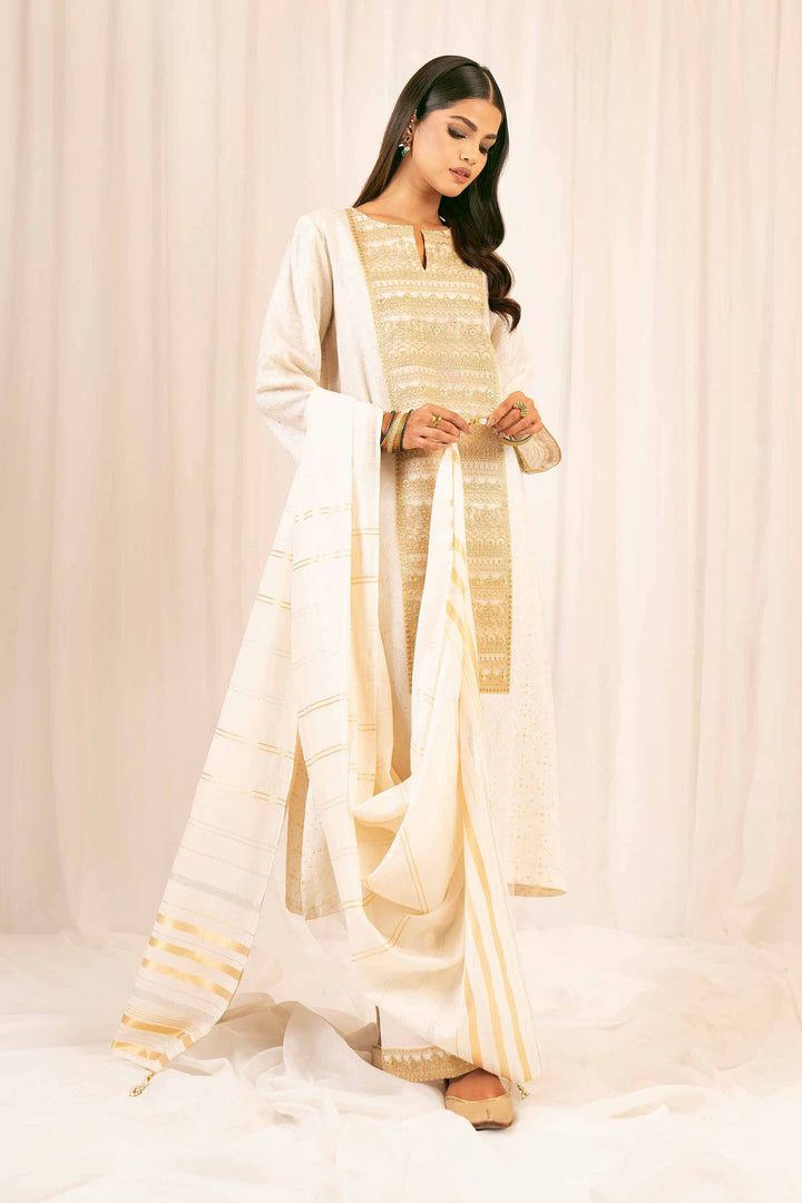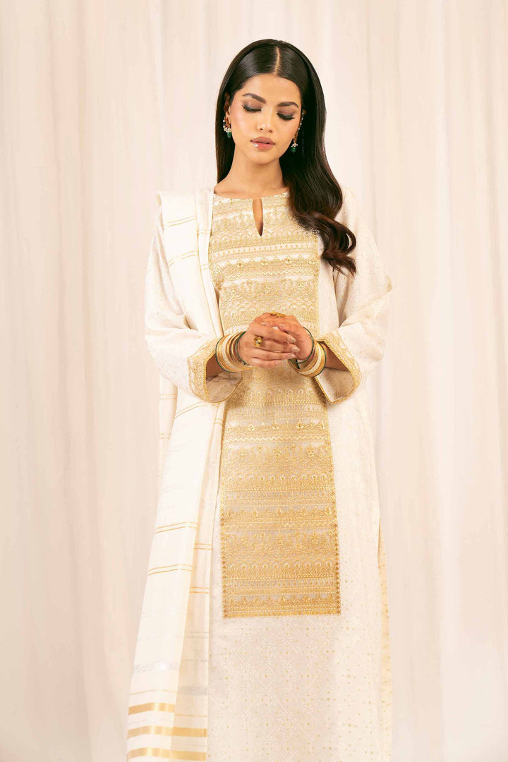Enhance the value of the entire clothing with this embroidered three-piece suit from the latest pret summer FESTIVE collection.