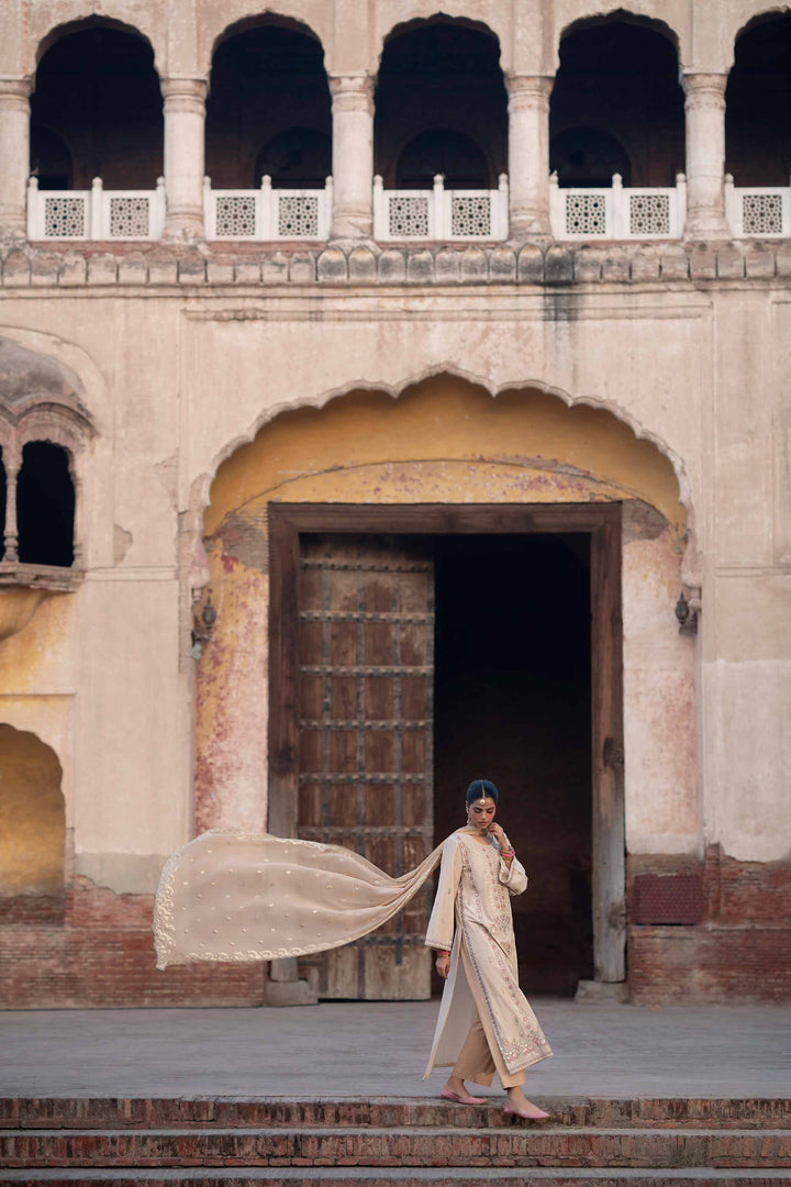 Embroidered Shirt With Dupatta & Trousers