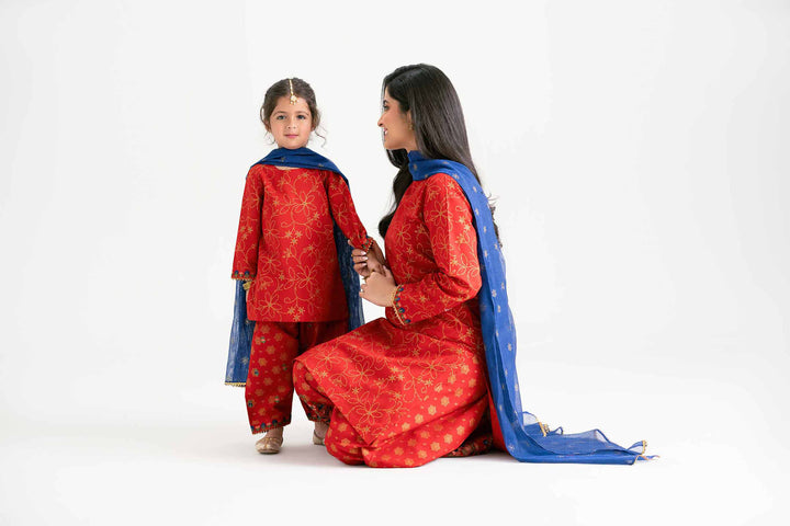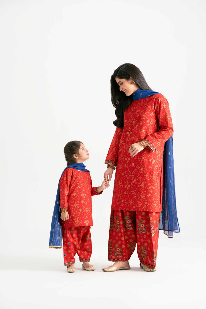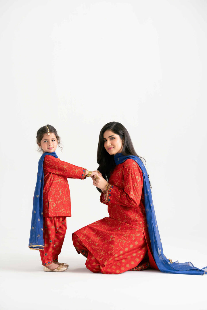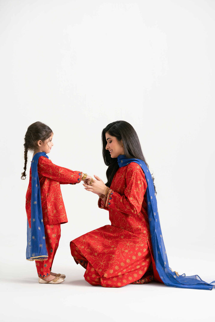Power up your look and make a mark in everyone's heart by styling this printed embroidered three-piece suit from the latest pret MOTHER & DAUGHTER summer collection.