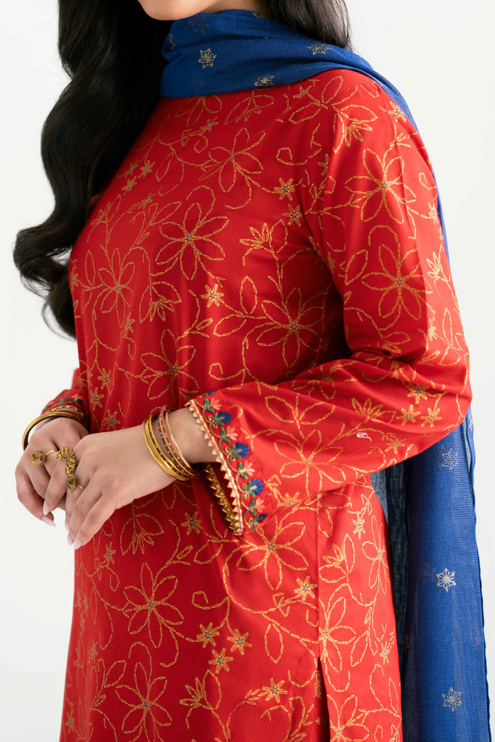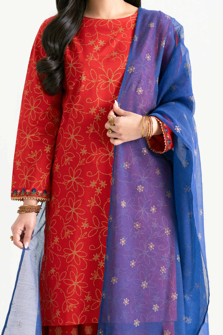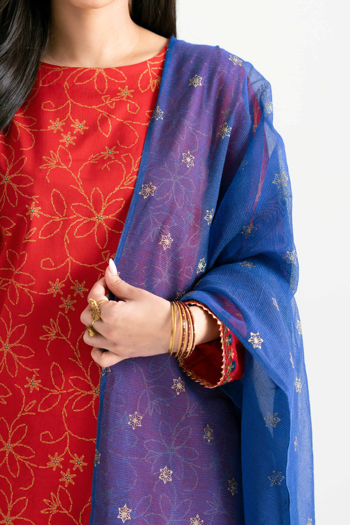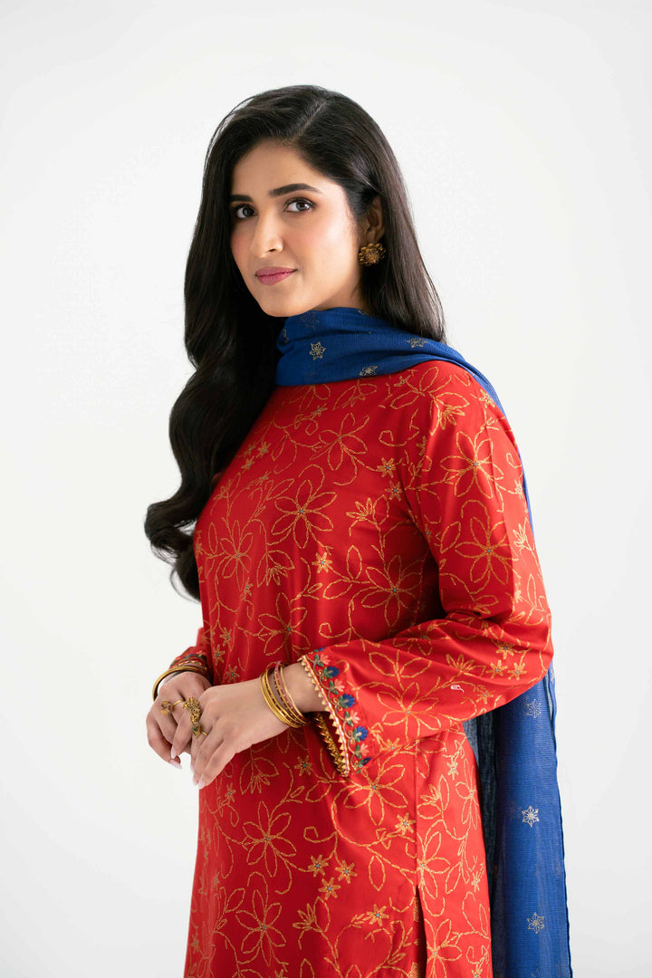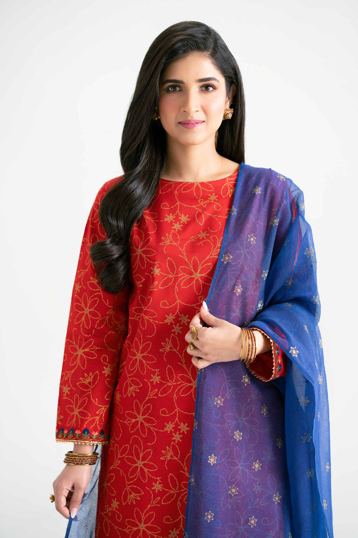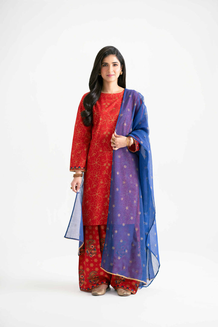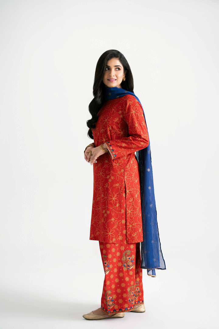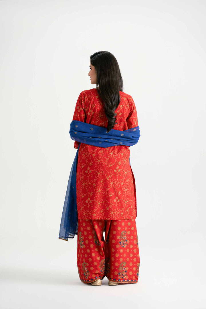 Printed Embroidered Shirt With Dupatta & Shalwar