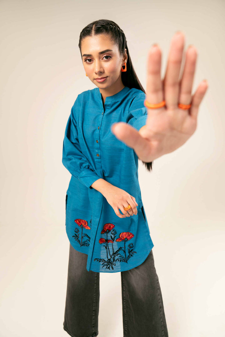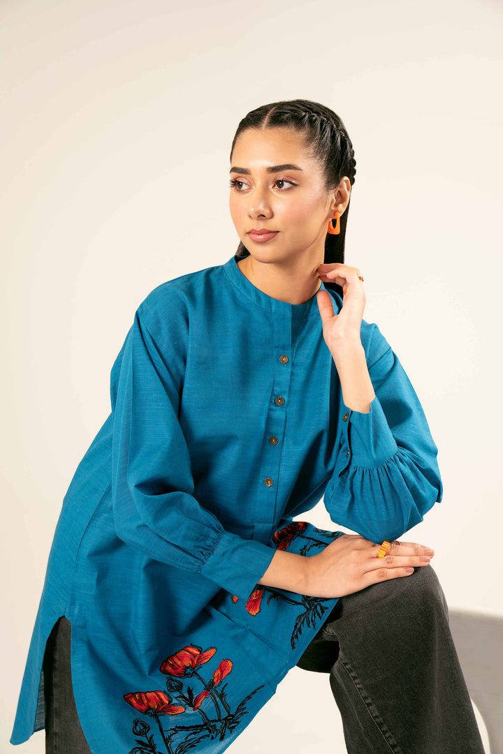 Experience timeless elegance in this embroidered tunic from the latest pret winter collection.