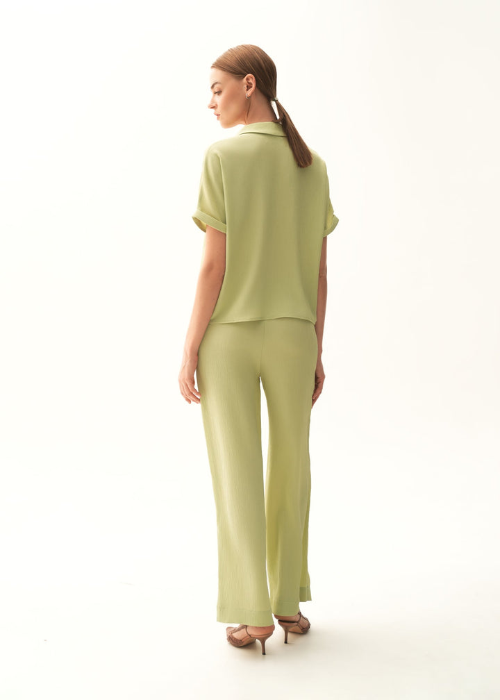 Product Description: Button-down shirt in flowy textured fabric, with a notched lapel collar and short sleeves.